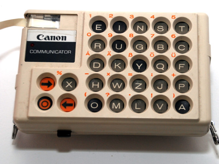 Canon Communicator Canon Description: Petit appareil de communication portable. Les messages tapés s’impriment sur un ruban papier. Clavier QWERTY et…