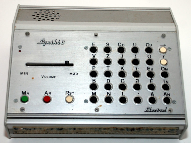 SYNTHE-3 Année de conception: 1989 Années d’utilisation: Concepteur: Electrel Coût: 9200 Fr (1400 €) Description: Appareil doté de clavier…